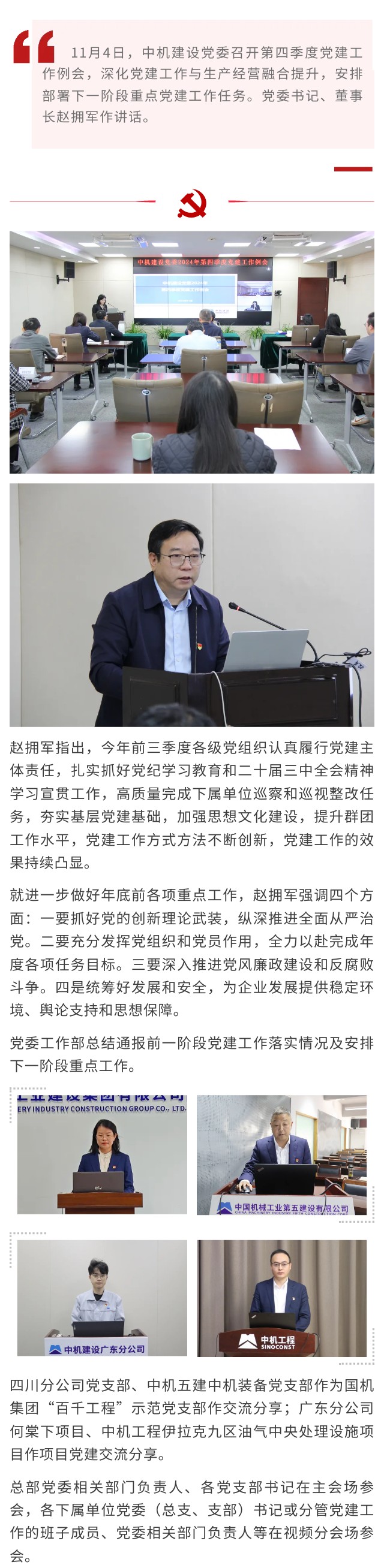 中機(jī)建設(shè)黨委召開(kāi)第四季度黨建工作例會(huì)
